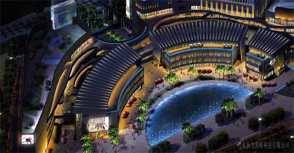 建筑:商業(yè)裙樓東西立面及塔冠為重點照明區(qū),裙樓南北立面商業(yè)內(nèi)街為次照明區(qū)。