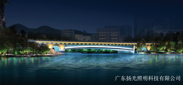 多點:兩段跨河橋梁,園內景觀連廊,自然特色山體,水上島嶼,入口廣場,紅白涼亭。照明文化的組團。橋、景、山、水,凸顯桂林特色園林元素,形成臨界桂新區內城市照明的“夜游會客廳”。