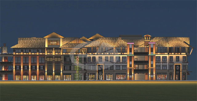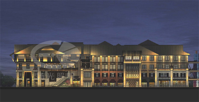 本次設計以體現古鎮建筑民族文化特色和展示項目商業價值為引領,挖掘和探討項目文化背景和建筑特色,利用先進的燈光技術手段塑造特有的古鎮夜景空間形象。讓項目煥發出無限魅力,打造具有表現力的燈光形態,兼顧視覺需求與藝術表現,以一種高貴的姿態展示該項目的商業價值和藝術價值。