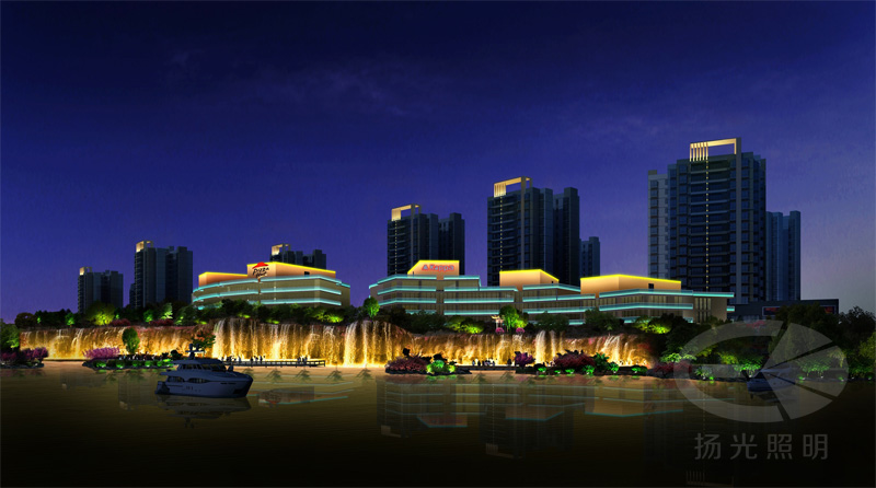 如果是大江大河之類的自然水景,不可能將整個(gè)水面點(diǎn)亮,所以主要采取反射岸邊景物,用來凸顯水體的存在和景觀。增加水體的觀賞性,營造夜景的氛圍,一般選用造型別致、隱藏性好的LED作為自然水景的燈具。