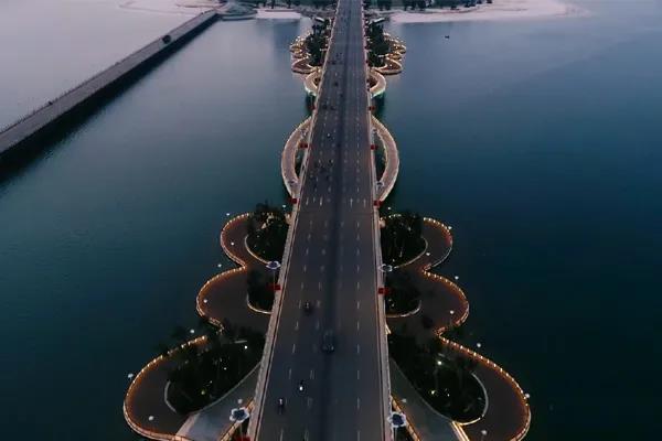 恒大海花島1號島入島主橋梁是海花島的三個人工島連接陸地側濱海大道的一條主要通道,橋長608米,寬17米。